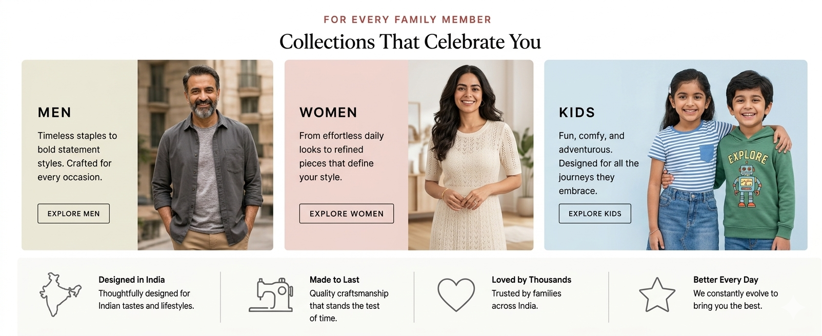 From men’s everyday essentials to women’s trend-led styles and kids’ playful comfort, we design for every member of your family.