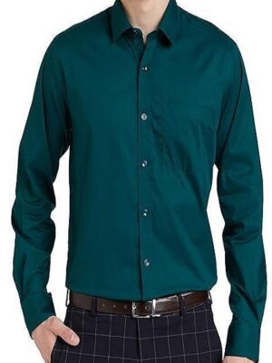 Solid Cotton Formal Shirt For Men Full Sleeve Plain Bottle Green Color